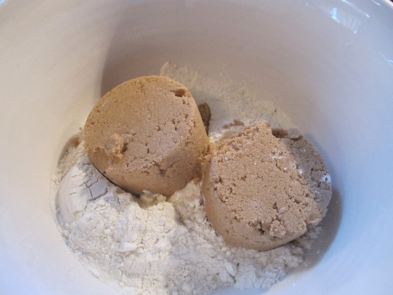 The recipe called for 1 cup of nut flour; which you make by finely chopping 1 cup of any nut you have on hand (pecans, walnuts or almonds) in a food processor. I used the pecans I had on hand, of course.